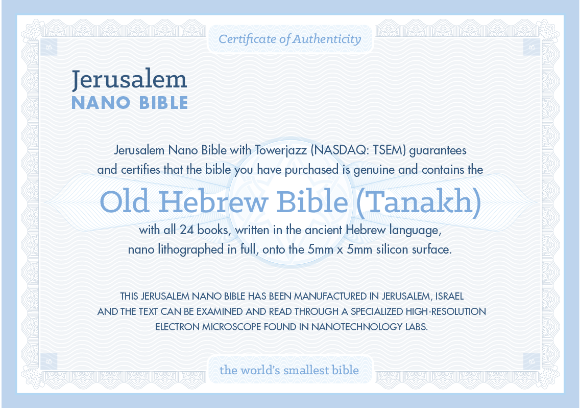 The only Bible Nano Nano that produces Nano Bible in Israel