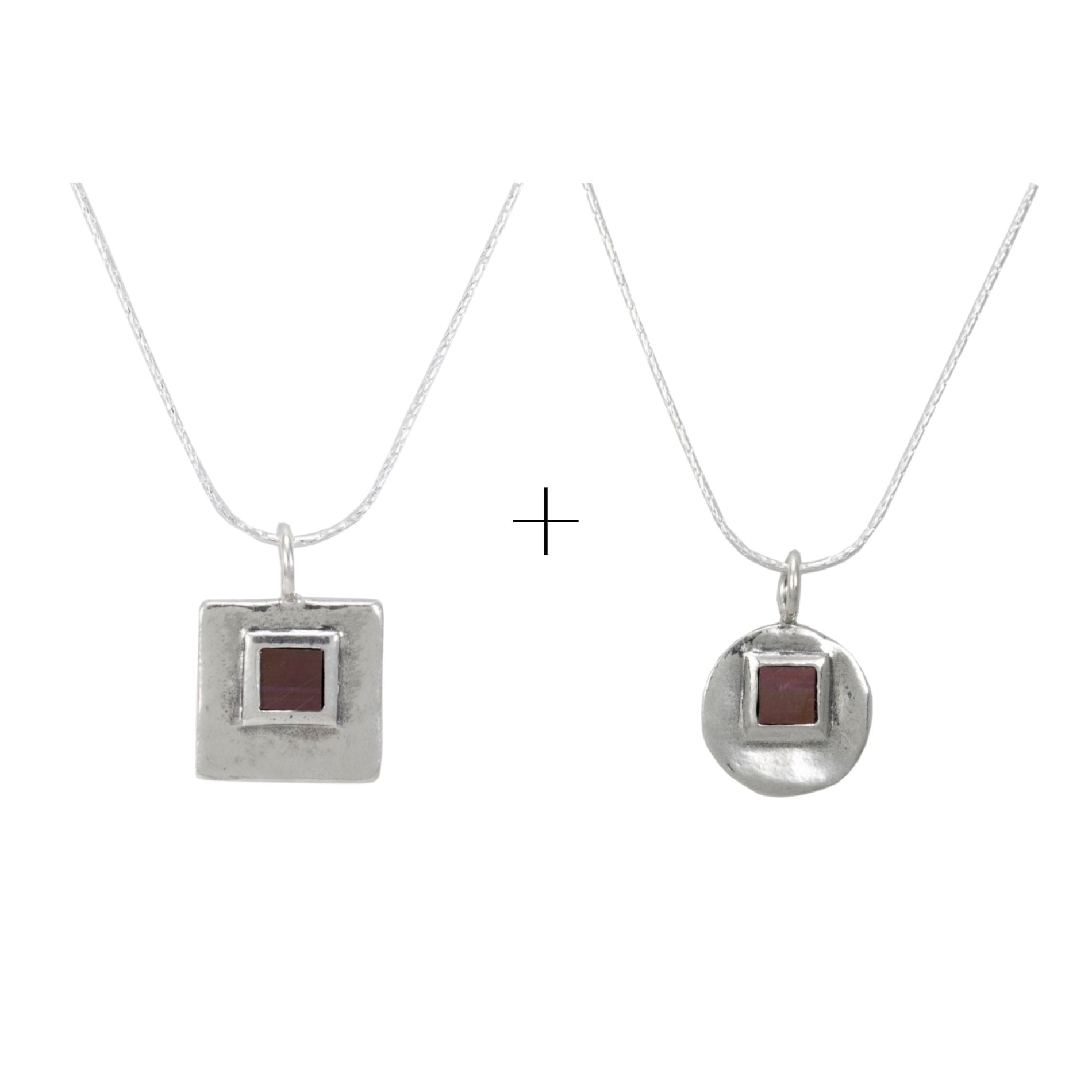סט שרשראות לגבר ולאישה מכסף עם תליון עיגול וריבוע עם ננו תנ"ך