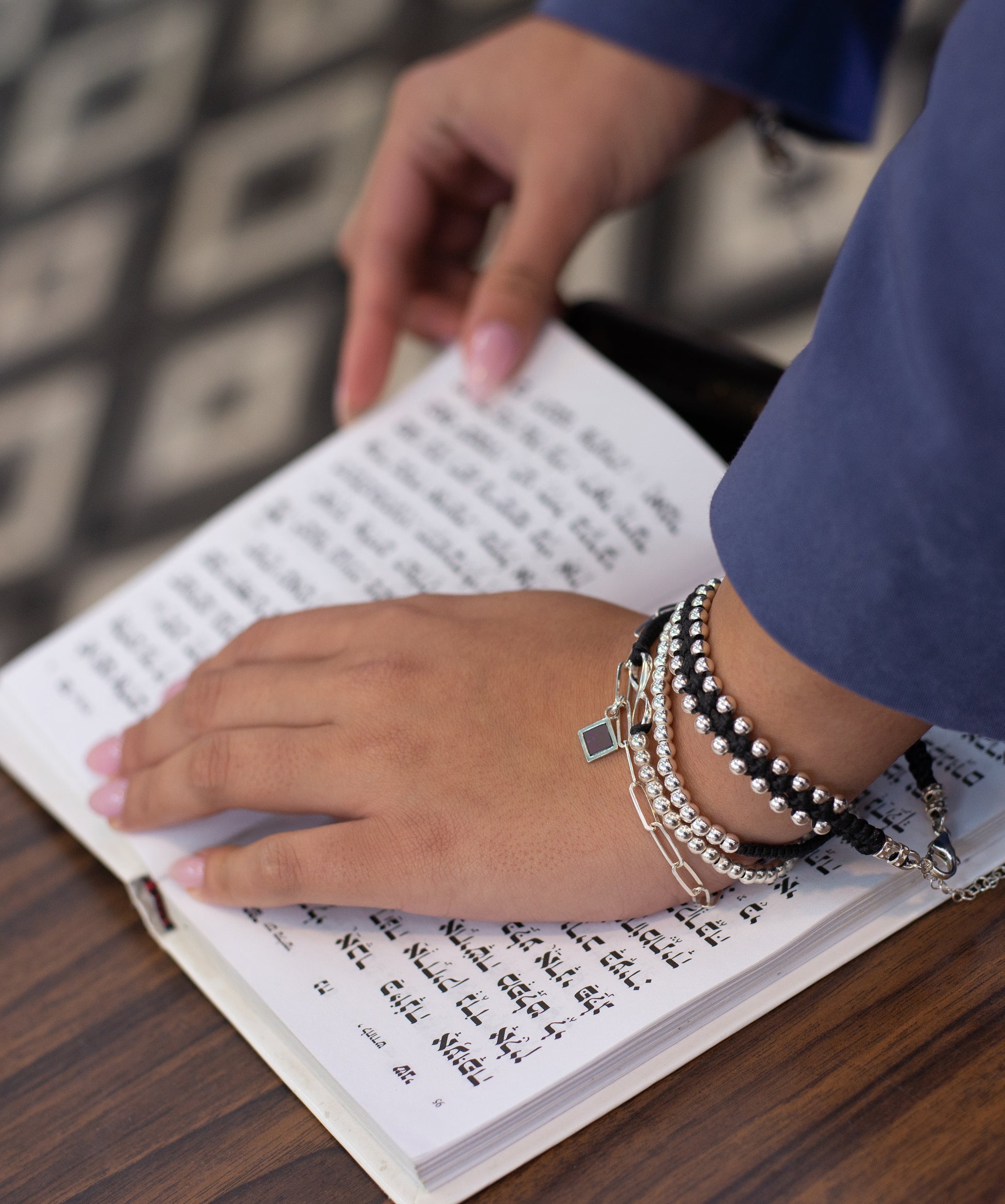 צמיד עדי- חוליות גדולות עם תליון מעויין משובץ ננו תנ"ך