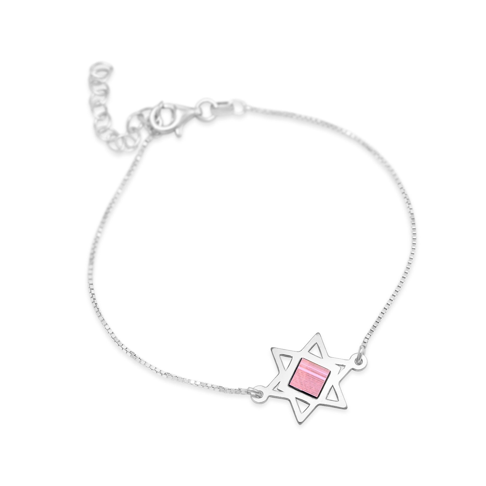 צמיד מגן דוד כסף 925 עדין לאישה עם ננו תנ״ך