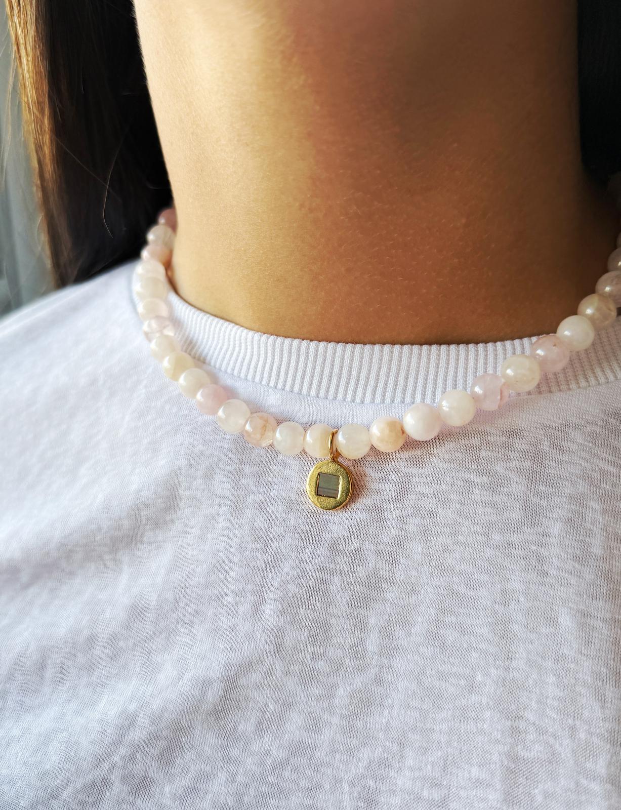השרשרת משלבת את העוצמה של אבני הרוז קוורץ- "אבן האהבה" הידועה ביכולתה לפתוח את הלב, לעודד אהבה עצמית ולהשרות רוגע.